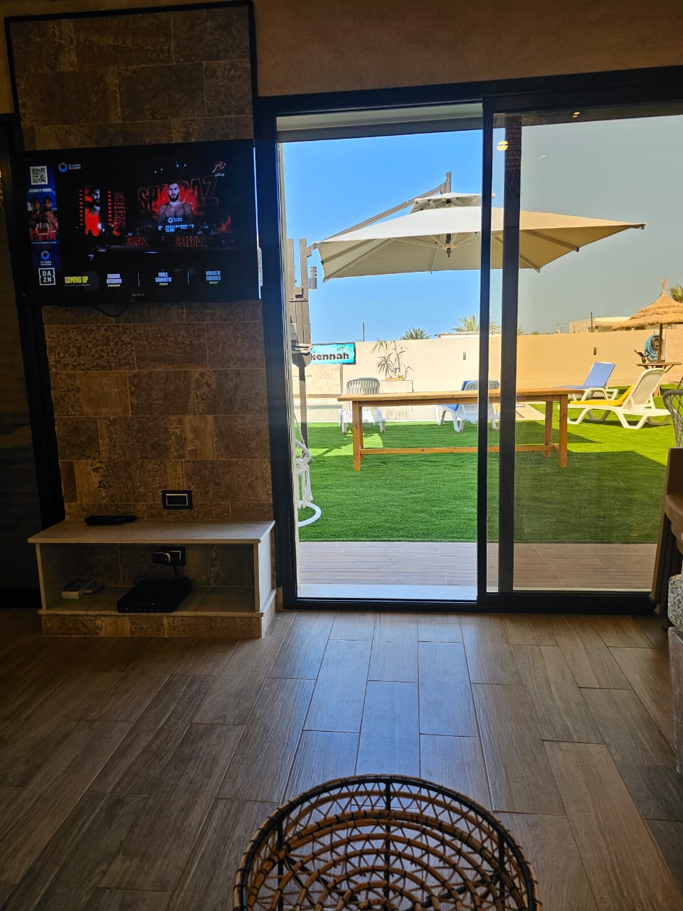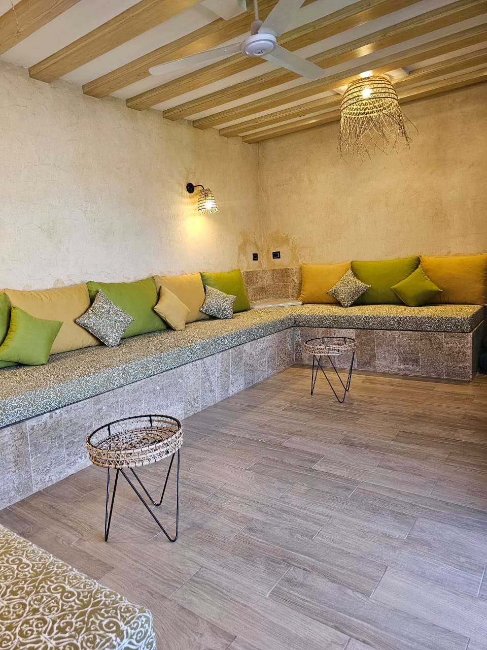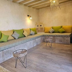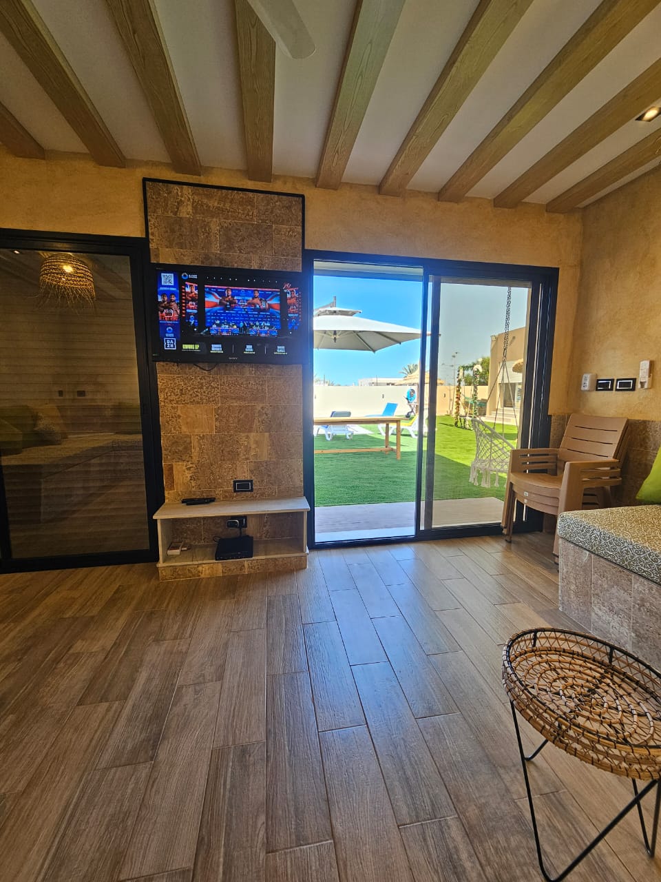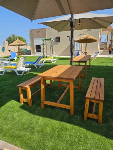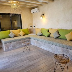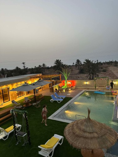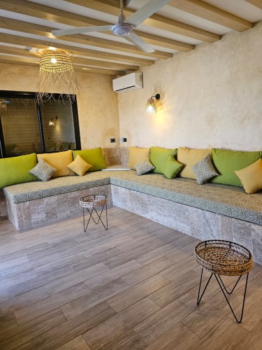 Située dans un environnement calme et agréable, la villa offre un salon extérieur spacieux entièrement ouvert sur la piscine, créant une véritable continuité entre intérieur et extérieur.